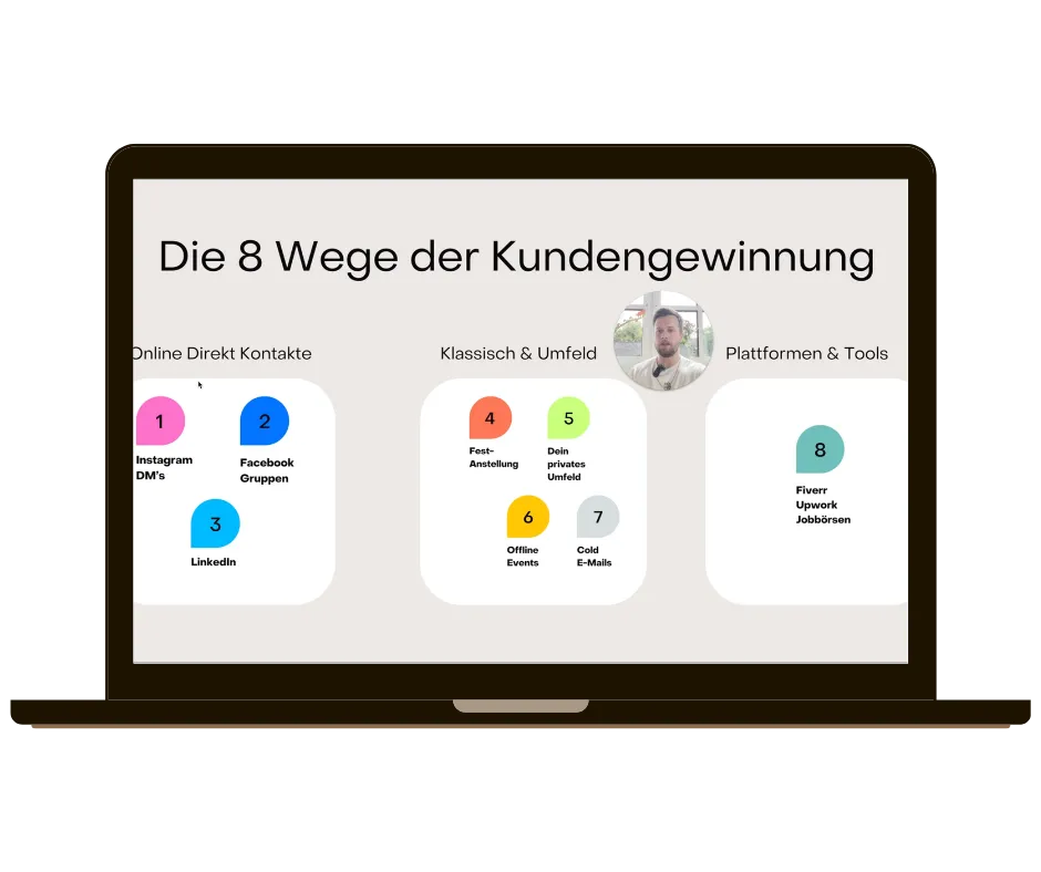 Starte auch ohne Vorerfahrungen oder deinen Job zu kündigen, denn es gibt keine Technik-Hürden und auch keine Selbstvermarktung. Du brauchst nur deinen Laptop und unsere bewährte Schritt-für-Schritt Anleitung, um deine ersten Kunden zu gewinnen.